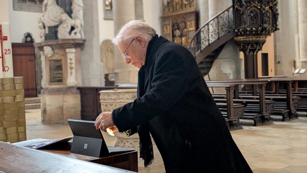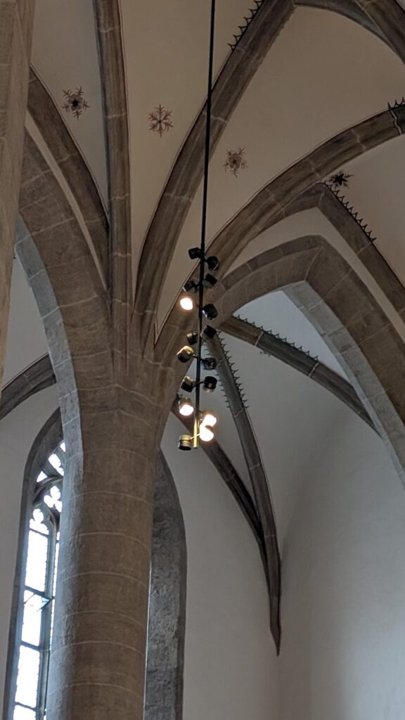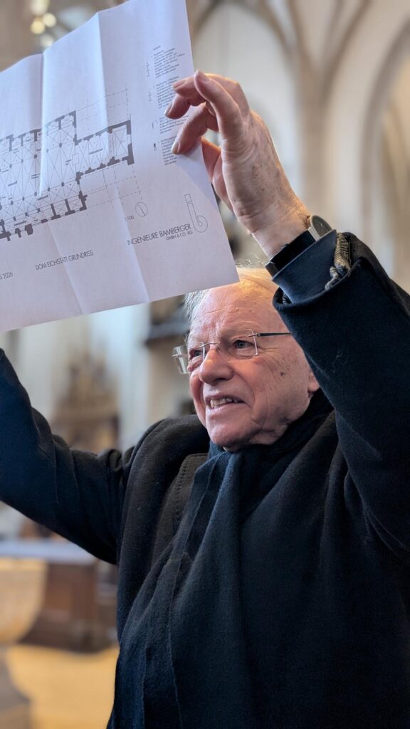 Zum Abschluss präsentierte Walter Bamberger seine Lichtshow, die er eigens anlässlich der Wiedereröffnung des Domes 2024 nach langjähriger Sanierung konzipiert hatte. Die Show lief damals nur an einem einzigen Wochenende und war seitdem nicht mehr zu sehen. Extra für unser Team hat er die Inszenierung nun noch einmal reaktiviert. Das Besondere daran: Für die Lichtshow werden keine zusätzlichen Leuchten oder externen Steuerelemente verwendet – lediglich das, was bereits im Dom vorhanden ist. Zuerst erzählte der Dom selbst mithilfe diverser Lichtszenen seine Entstehungsgeschichte. Dann traf im Kirchenraum mit Diskoanklängen elektronische Musik auf eine stimmungsvolle Lichtinszenierung. Ein wahres Highlight für alle Technikbegeisterten & echte Insider: Eine Lichtshow, die vollständig über DALI gesteuert wird – „Geht nicht, gibt’s nicht“ bei Walter Bamberger.